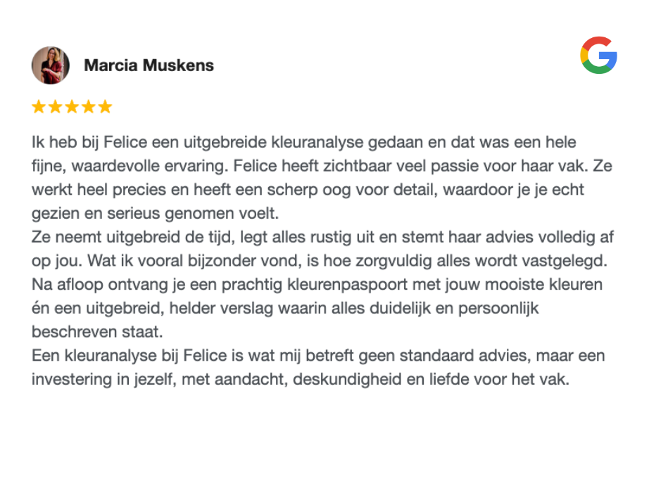 Jij weet nu in welke kleuren jij straalt én waarom. En jij maakt zelfverzekerd de beste kleurkeuzes!